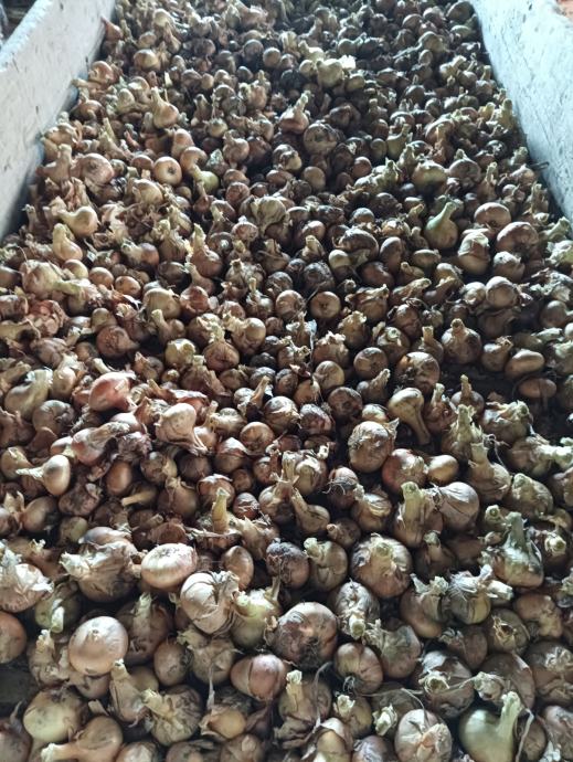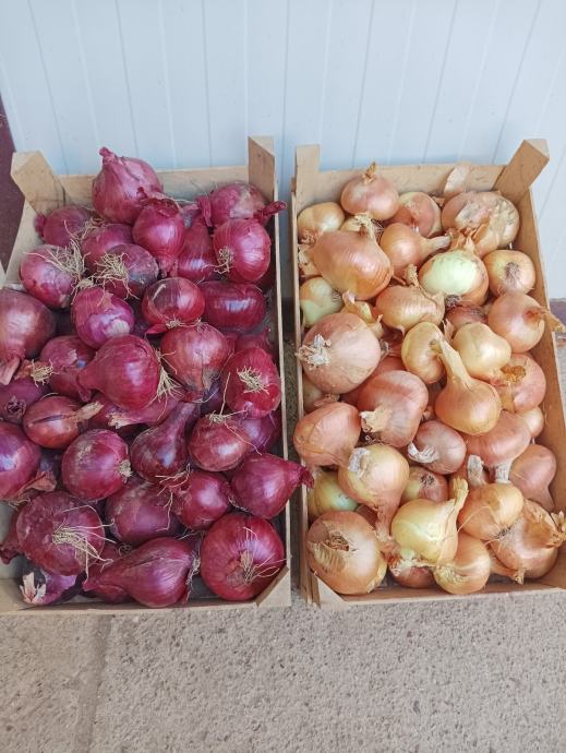 Luk crveni (pogačar). Cijena 0,70 eur/kg. Cijena se odnosi samo za prodaju na veliko. Kalibraža ispod fi 40 mm, cijena 0,40 €/kg.