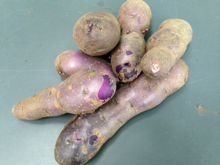 Plavi krumpir podrijetlom je iz peruanskih Anda, a bio je omiljeno jelo tadašnjih kraljeva. Pripada porodici Solonaceae, vrsta Solanum vitelote. Prirodno snažno obojeni krumpiri su ujedno i prvi pronađeni krumpiri, pa možemo reći da njima unosimo duh tradicije drevnih civilizacija Maja i Inka star nekoliko tisuća godina u naše domove. Plava boja krumpira potječe od pigmenta antocijana iz skupine fitonutrijenata nazvanih flavonoidi. Ne radi se o genetskoj manipulaciji niti umjetnim bojama. Antocijani su u vodi topivi biljni pigmenti koji se na svjetlu reflektiraju od tamnocrvene do plavičaste boje, te daju boju borovnicama, kupinama, višnjama, brusnicama…i ukrašavaju jesenske plodove i lišće vatrenim bojama. Poznato je da su antocijani snažni antioksidansi koji vežu i neutraliziraju visoko reaktivne, slobodne radikale, sprečavaju štetno djelovanje UV zračenja te imaju i antibakterijska svojstva. Jačina boje ima direktan utjecaj na nivo antioksidativne aktivnosti.Zbog velikog udjela antoiksidansa i antikancerogenih svojstava u Irskoj je zakon da ja djeca u vrtiću moraju konzumirati obavezno jednom u tjednu.