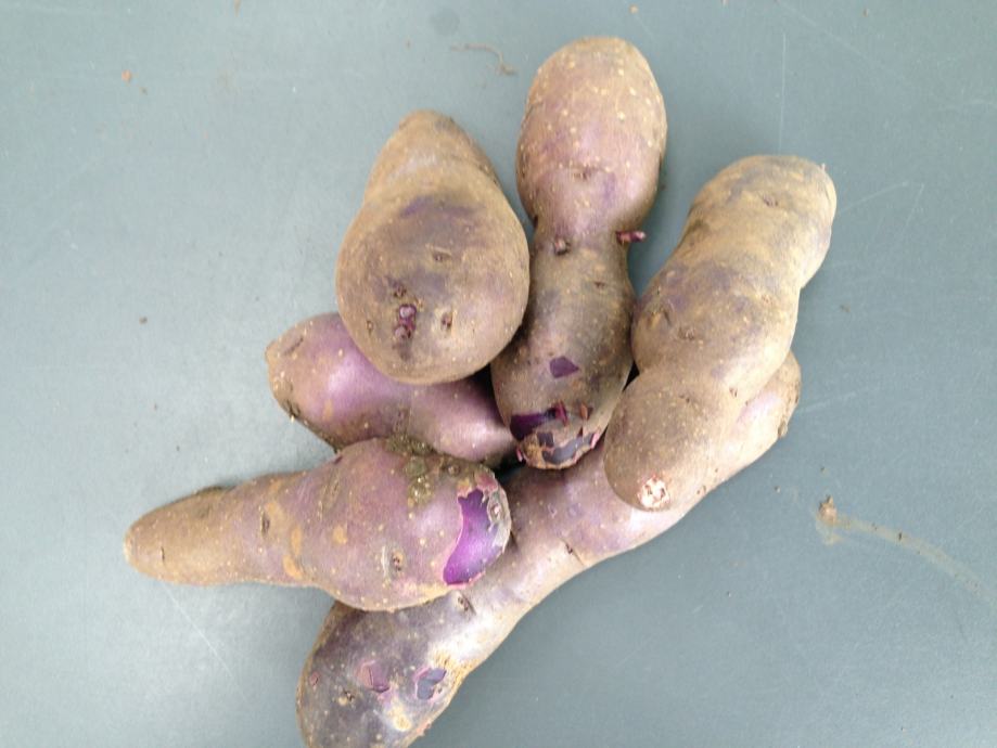 Krumpir ima tamnoplavu, gotovo ljubičastu koru i jednako tamnoplavo meso. Kora je glatka, "oči" su plitke, a ukus izvrstan. Priprema se na uobičajene načine, kao i svaki drugi krumpir. Sa plavim krumpirom moguće je načiniti zanimljiv pomfrittes, pire (gnječeni krumpir) i vrlo interesantnu krumpir-salatu. Sadnja gomolja obavlja se krajem ožujka-početkom travnja, a tlo mora biti lagano, bogato humusom.