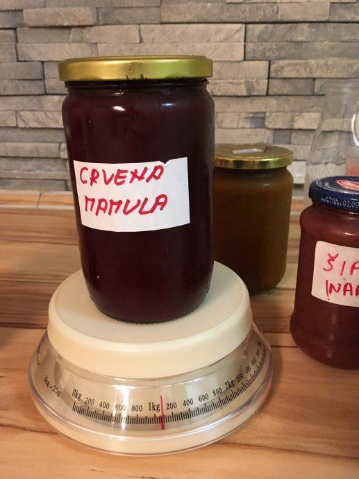 Mermelada od crvenim amula ili kako ih neki zovu mamulu 8 EUR velika tegla, po okusu jako sličan šljivi.