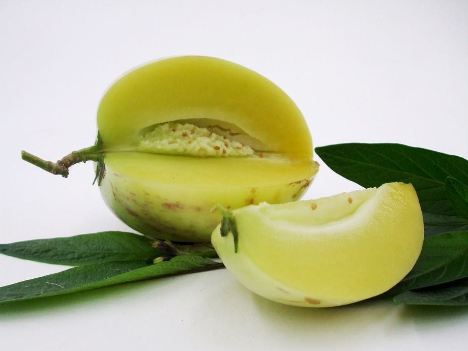 Dinja poznata kao 'Pepino', porijeklom je iz Anda. U sjevernom Peruu pronađeni su dokazi o njezinoj sadnji već 600g. prije Krista. Plodovi su krupni oblika dinje,tanke, glatke kore koja prelazi iz zelenkaste u žućkastu s ljubičastim prugama do zrelosti.Kod berbe se s njima mora nježno postupati. Njegova pulpa je žućkasto narančasta i vrlo mekana.Osvježavajućeg je okusa.Pepini se uglavnom konzumiraju svježi ili narezani u egzotičnu voćnu salatu. Dinja se prereže na pola i očisti se od sjemenki. Ovisno o želji jede se sa ili bez kore. Otvoreni plod ne traje dugo i postaje smeđi na zraku.