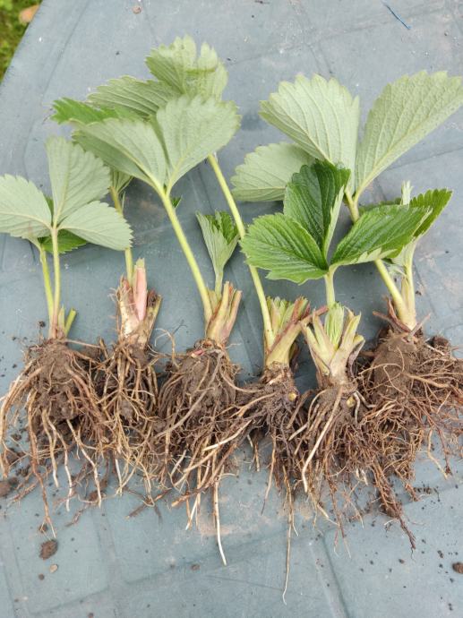 Sadnice krupnih jagoda .Rode od sredine 5.mjeseca. plodove donose jednom godišnje. Poštom šaljem minimalno 50 sadnica.