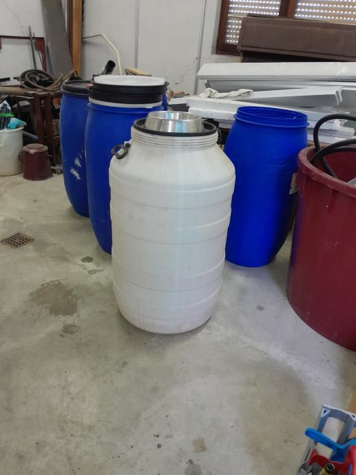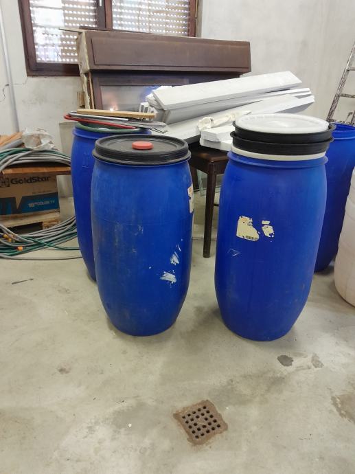 Bačve 100 l 4 komada, 20€ kom, bačva 200 l 1 komad 35€ i bačva 500 l 1 komad 80€.