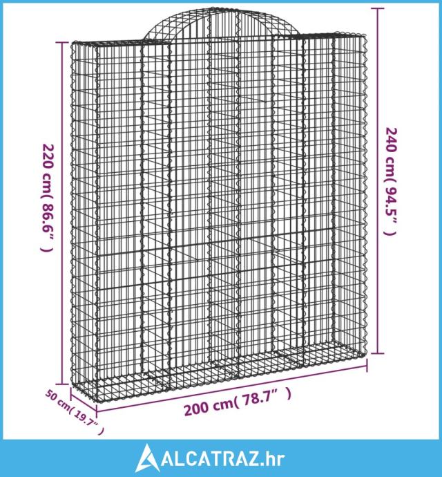 Gabionska košara s lukom 200x50x220/240 cm pocinčano željezo - NOVO