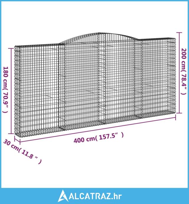 Gabionska košara s lukom 400x30x180/200 cm pocinčano željezo - NOVO