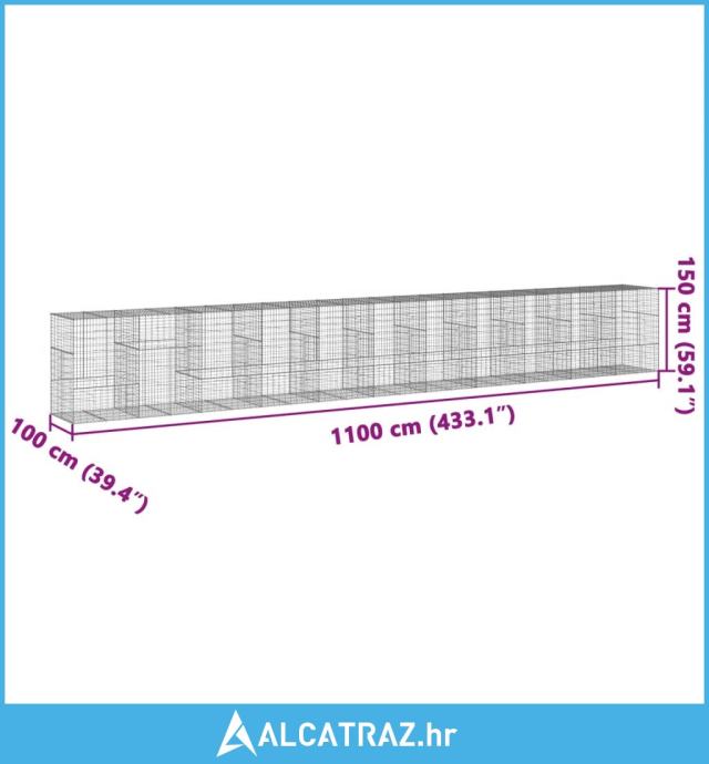Gabionska košara s poklopcem 1100x100x150 cm pocinčano željezo - NOVO