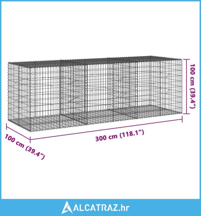 Gabionska košara s poklopcem 300x100x100 cm pocinčano željezo - NOVO
