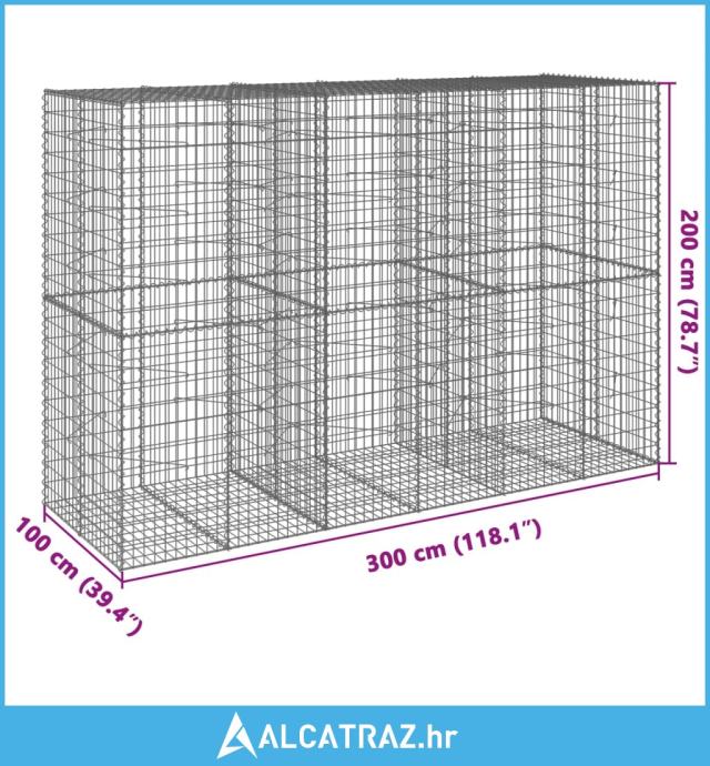 Gabionska košara s poklopcem 300x100x200 cm pocinčano željezo - NOVO