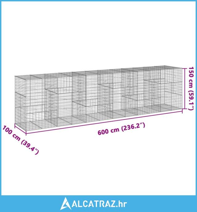 Gabionska košara s poklopcem 600x100x150 cm pocinčano željezo - NOVO