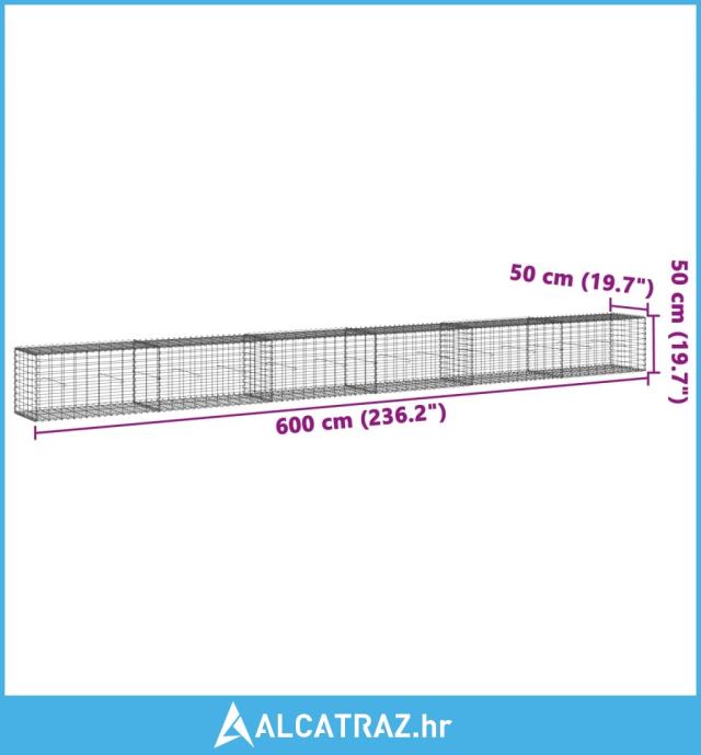 Gabionska košara s poklopcem 600x50x50 cm od pocinčanog željeza - NOVO