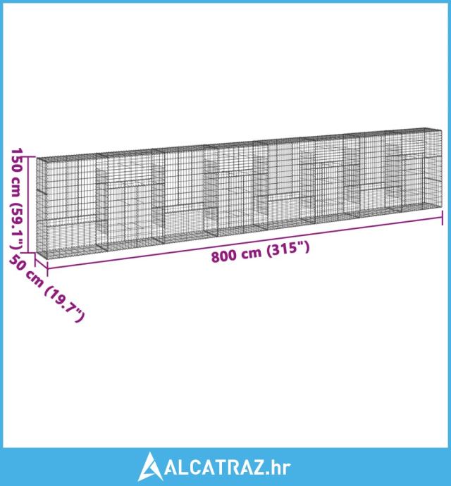 Gabionska košara s poklopcem 800x50x150 cm pocinčano željezo - NOVO