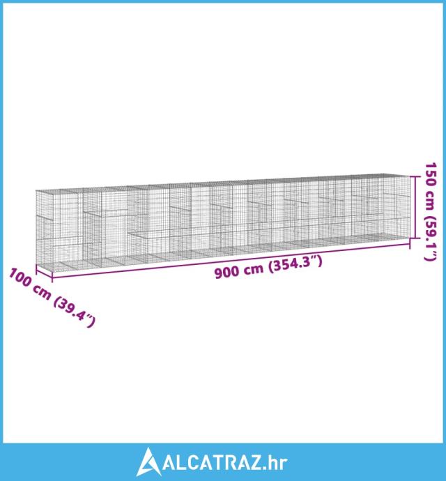 Gabionska košara s poklopcem 900x100x150 cm pocinčano željezo - NOVO