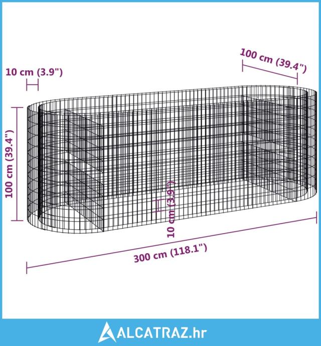 Gabionska povišena gredica od pocinčanog željeza 300x100x100 cm - NOVO