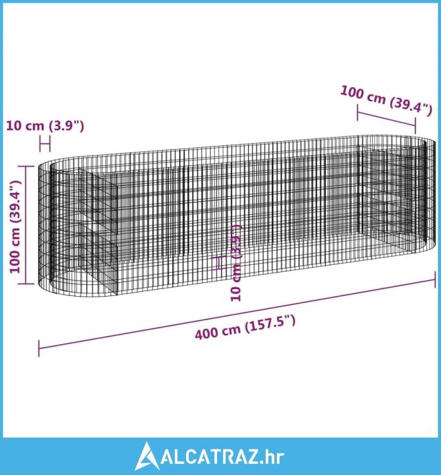 Gabionska povišena gredica od pocinčanog željeza 400x100x100 cm - NOVO