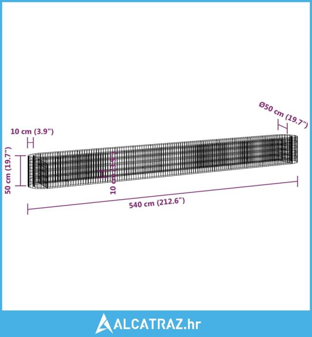 Gabionska povišena gredica od pocinčanog željeza 540x50x50 cm - NOVO