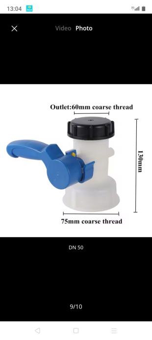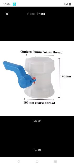 DN 50 promjer fi 72mm plastični navoj ili sa metalnim navoj adapterom za brzu montažu; DN80 promjer trapeznog grubog navoja cca 95mm; ventili su potpuno novi nikada korišteni, plombirani alu folijom i zapečaćeni
