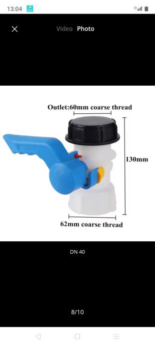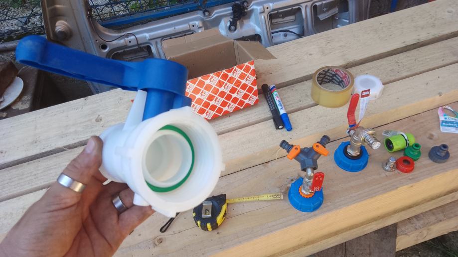 1.-manji čep cca 62mm+brtva+ 1/2" metalni kuglasti ventil sa nastavkom za šlauf vodovodno crijevo ili brzom spojnicom (pipa)+ brtva metalna 14€ plastična 9€ ;