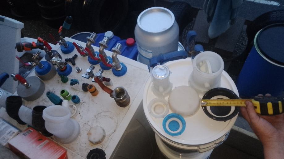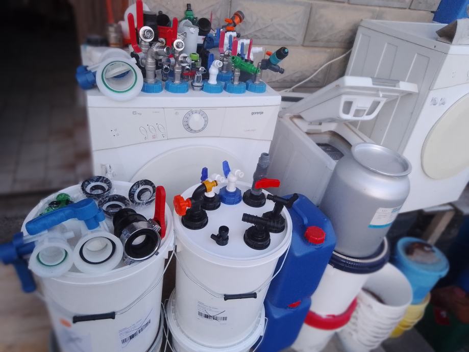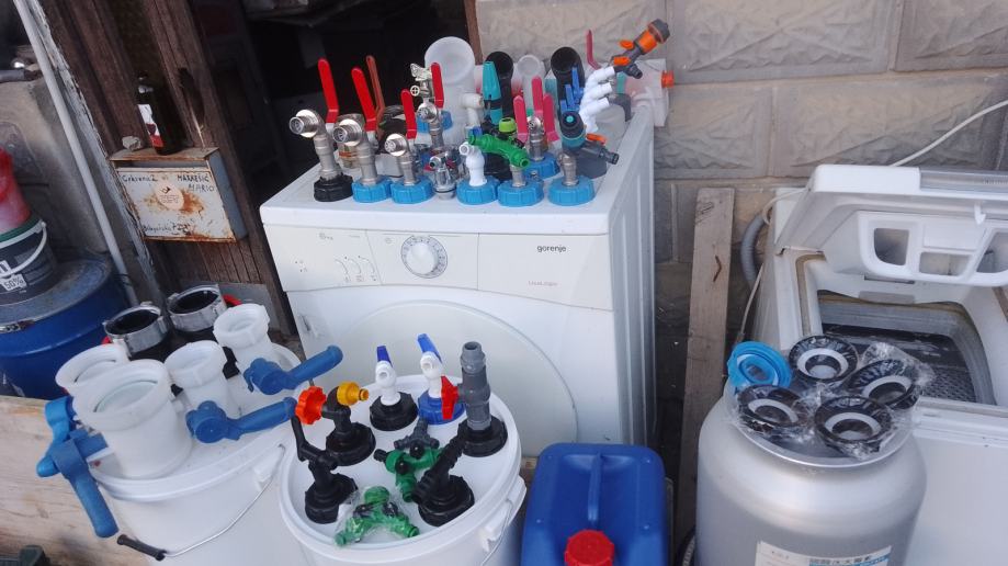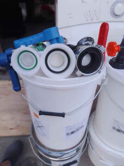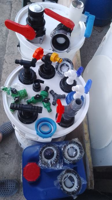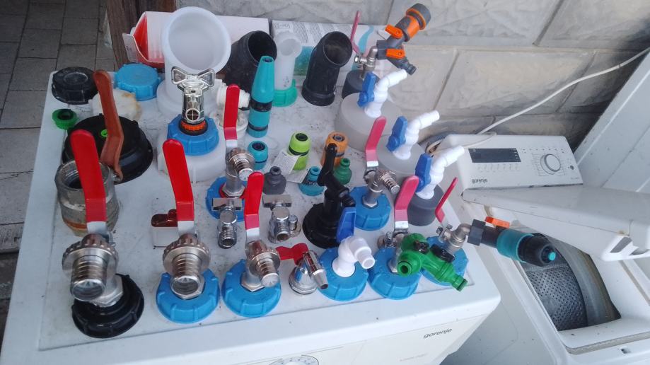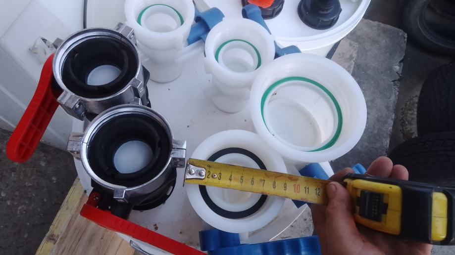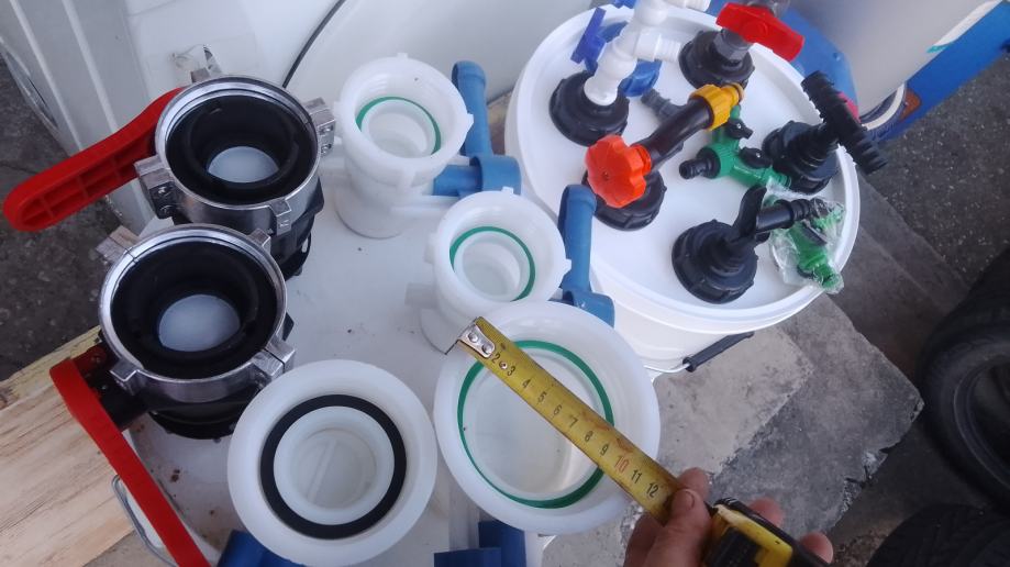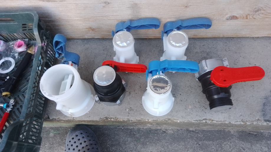 5-veći čep cca 95mm+brtva+ 3/4" metalni kuglasti ventil sa nastavkom za šlauf vodovodno crijevo ili brzom spojnicom + mesing matica + brtva 23 €/kom;