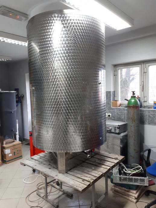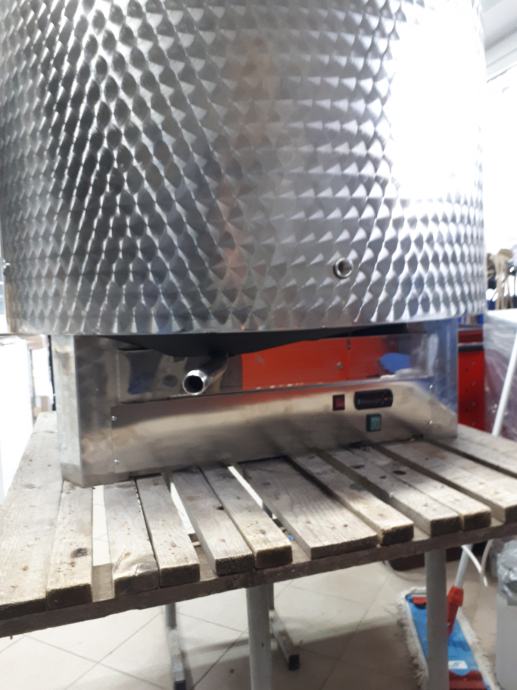 Inox posuda za vino sa ugrađenim sistemom za hlađenje i grijanje po zahtjevu te kontrolirano vrenje mošta i čuvanja vina.Zapremine 1100 lit dupla inox stijijenka sa izolacijm.Konusno dno totalni ispust 1 cola i dvije inox slavine 1 /2 cola.Plivajući poklopac te prašnasti poklopac sa rupom za vrenjaču.Priključni napon 220V