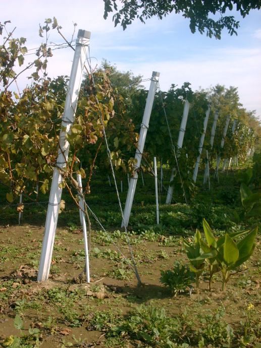 Jedini stupovi pogodni za parnu sadnju su stupovi od PVC-a iz razloga što ne piju vodu iz zemlje te pri niskim temperaturama ne smrznu trs.