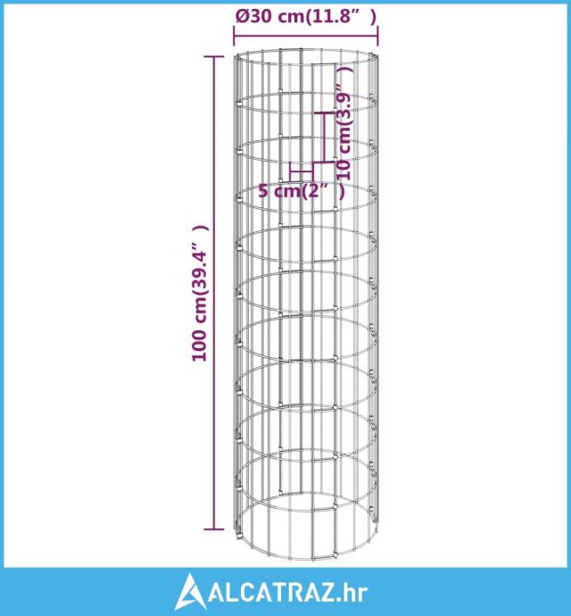 - Dimenzije svakog gabiona: 30 x 100 cm (Promjer x V)
