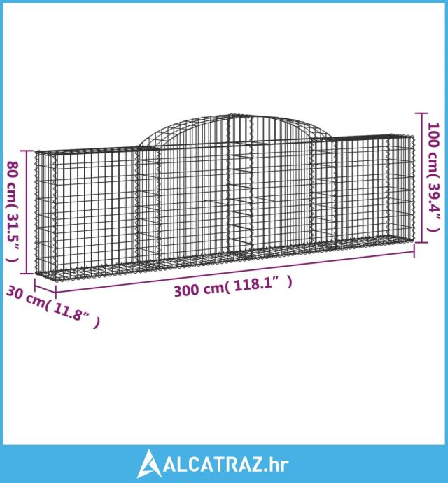 Lučne gabionske košare 3 kom 300x30x80/100 cm pocinčano željezo - NOVO