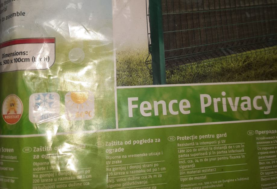 Prodaje se mreža - zaštita od pogleda/sunca. Novo, zapakirano. Dimenzije 500 x100 cm (DxV). Otporna na vremenske uvjete.