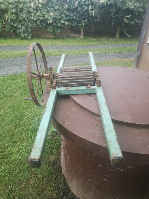 Prodaje se masivno izrađena muljača za grožđe (metalni valjci, debeli profili konstrukcije, kvalitetan lim) koja savršeno iscijedi svaku bobu grožđa jer više ne obrađujem vinograd.