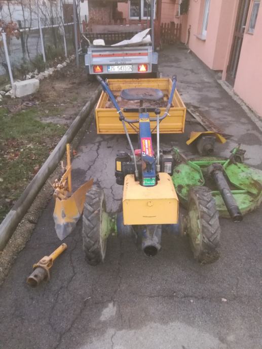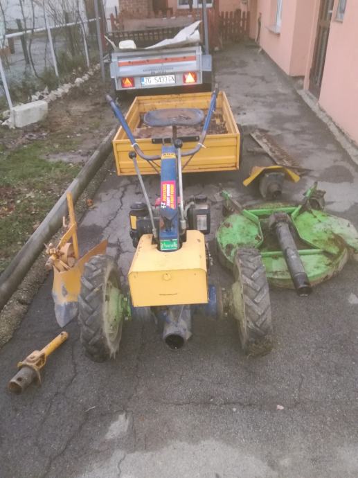 Prodajem motokultivator sa slika koji ima dosta priključaka, slikano je prije čišćenja i spremanja tako da se odmah vidi kakvo je stanje svi su u radnom stanju i u pravilu su u garaži preko zime. Prodajem ga zato što kupujem veći, postao je premali za posao koji bi trebao raditi, inače super stroj za košnju i malčiranje. Od priključaka ima roto kosa, strižna kosa, roto plug, plug razgrtač sa produžetkom, prikolica. Ako je moguće prodaja je isključivo u kompletu i cijena je po dogovoru