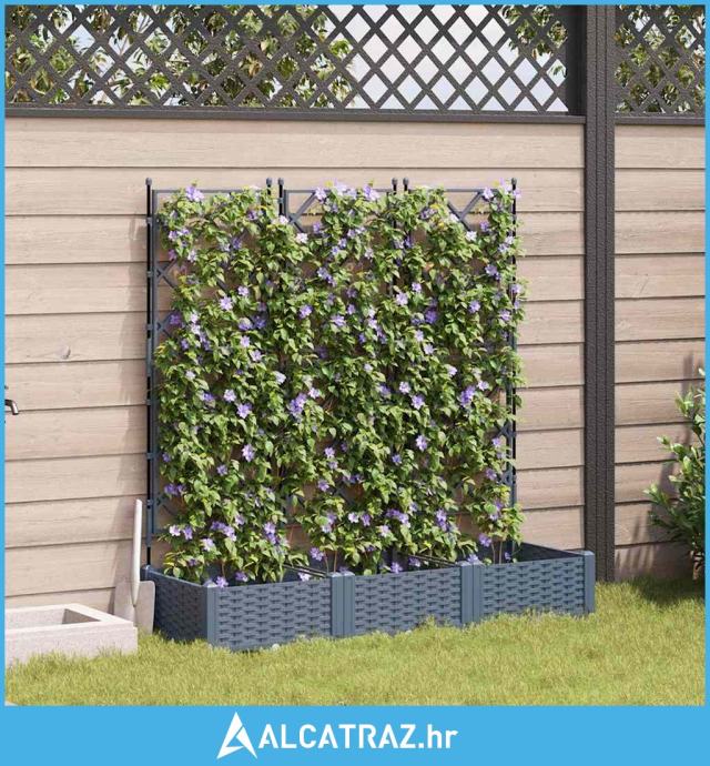 Ovaj planter s rešetkom je puni pogodak za ljubitelje vrtlarstva. Napravljen od čvrstih materijala, kombinira funkcionalnost s modernim svjetlosivim izgledom—savršeno za terase, vrtove ili balkone. S dimenzijama od 120 x 40 x 125.5 cm, imaš dovoljno prostora za različite biljke i cvijeće, pokazujući svoje vrtlarske vještine u stilu.