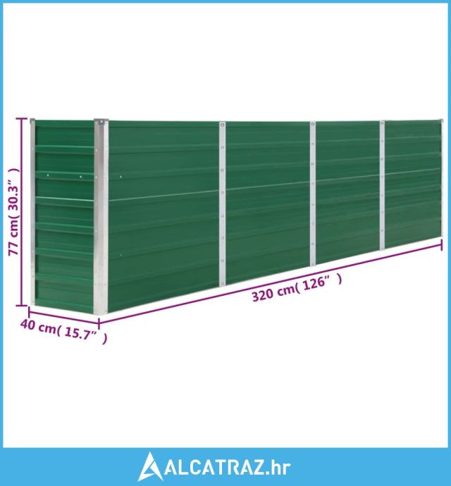 Povišena vrtna gredica 320 x 40 x 77 cm pocinčani čelik zelena - NOVO