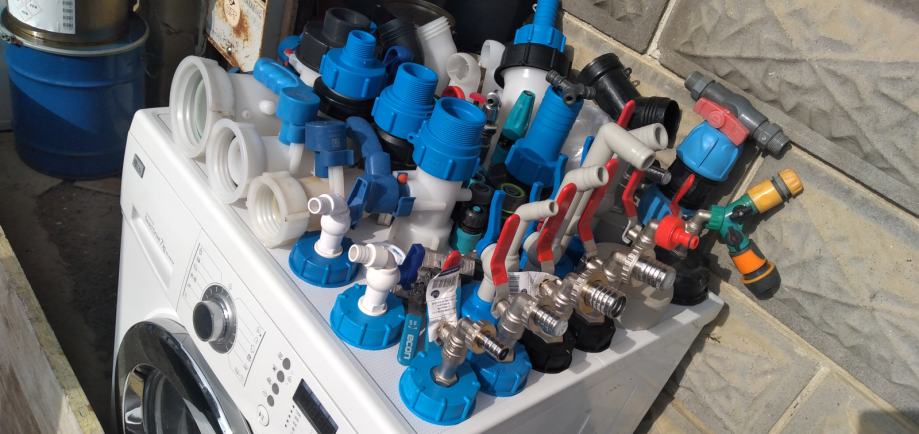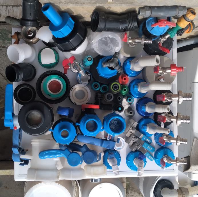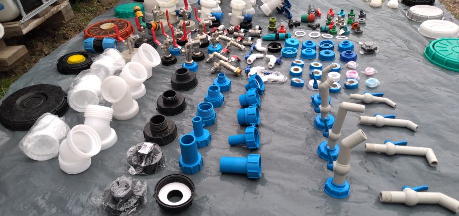 imam i dr. kao npr. -manji čep cca 60mm sa pripadajućom brtvom i reducirani urezan navoj za 1 col, 3/4 cola i 1/2 cola slavinu (pipu, špinu) 4€/kom., zatim nastavci 3/4" i 1/2" za brze spojnice vrtno crijevo cca 1-2 €; razne brze spojnice nastavak za slavinu za crijevo 1”, 3/4 cola i 1/2 ” cca 1,5 €/kom