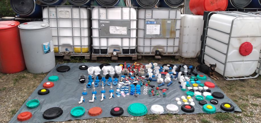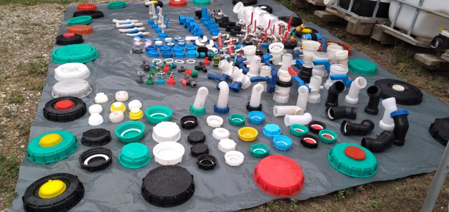 IBC cisterna gornji poklopac sa brtvom, grubi trapez navoj manji fi cca 160mm-12€/kom. ; veći poklopac sa brtvom trapezni navoj fi cca 240 mm-18€/kom.; manji čep sa brtvom 60 mm (cca 56nutarnji fi - 62 mm vanjski fi ) sa grubim navojem 1,5€/kom.; veći čep 95 mm (cca 100 mm) grubi navoj sa brtvom 4,5 €/kom.