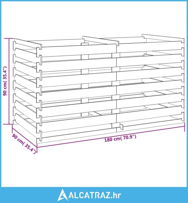 Rešetkasti komposter od impregnirane borovine 180 x 90 x 90 cm - NOVO