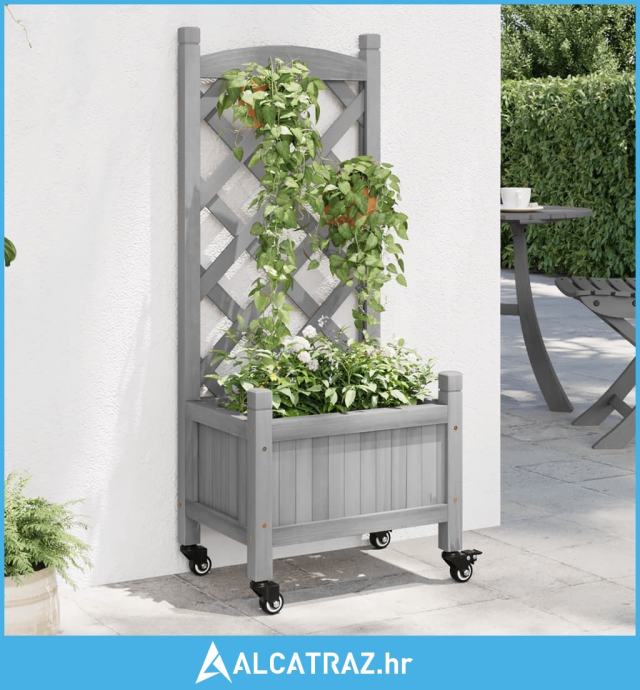Ova drvena sadilica s rešetkom i kotačima izvrstan je izbor za biljke penjačice u vašem vrtu, na trijemu i terasi.