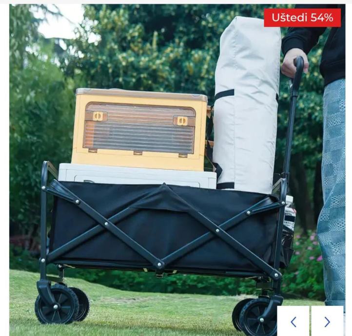 Velika sklopiva kolica za plažu idealan su izbor za obiteljski odmor, kampiranje i putovanja. S kapacitetom od 100 litara i nosivosti do 100 kg, omogućuju vam prijevoz gotovo svega što vam je potrebno. Stražnja vrata koja se otvaraju omogućuju lakši pristup predmetima, dok tri džepa (dva vanjska i jedan unutarnji) pružaju dodatni prostor za pohranu. Čvrsta konstrukcija i visokokvalitetni materijali osiguravaju dugotrajnost i izdržljivost.
