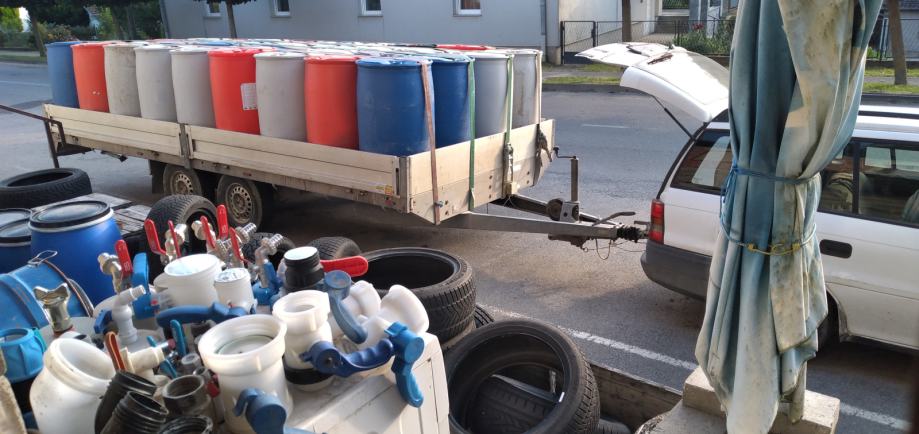 * bačve plastične i limene neke potpuno čiste nove, te korištene neoprane ili oprane i potpuno čiste ; spremne za skladištenje raznih krutih i tekućih tvari-zapremine su od cca 35,60,70,125,135,150,215,240 lit. od 8-25 €. Plastične su od PE-HD plastike za prehrambenu namjenu (popust na količine 5,10 i više kom. npr. od nekih popusta 6+1 gratis i sl.)