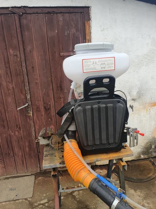 Motorna leđna šprica, 14 litara, korištena par puta i dugo stajala, motor radi, pumpa pušta vodu, prodajem.