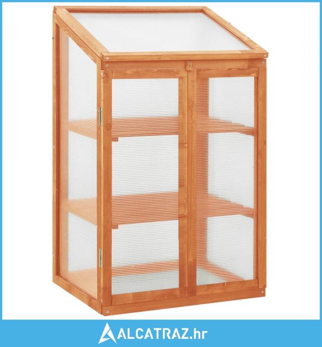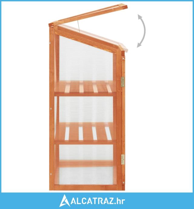 Vrtni staklenik napravljen je od PC ploče i masivne jelovine, koja je stabilna i izdržljiva. Ima 2 police koje pružaju dovoljno prostora za vaše biljke, cvijeće ili bilje. Lako je stavljati ili uklanjati biljke zbog krilnog poklopca.