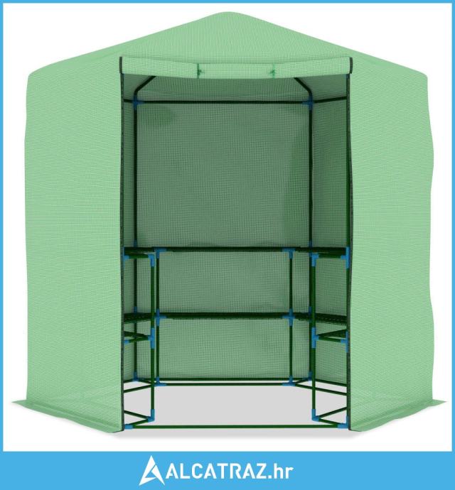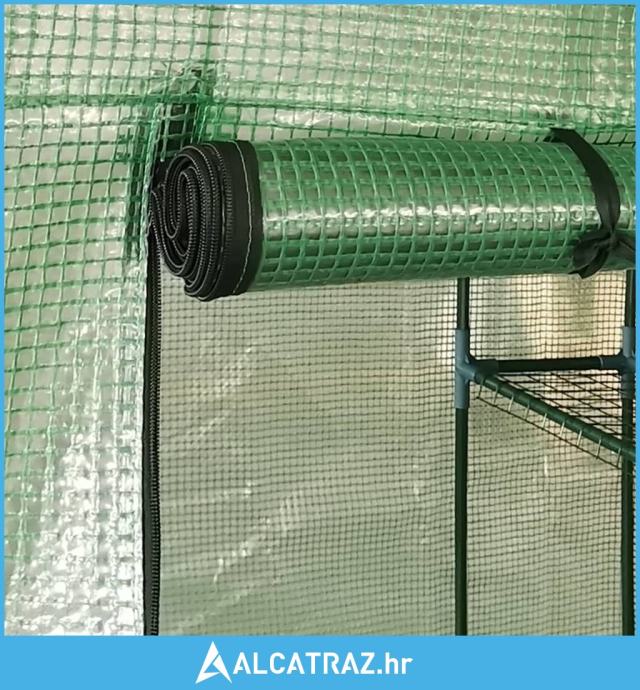 Ovaj plastenik bit će odlično rješenje za zaštitu vaših biljaka od vjetra, kiše, sunca i štete od ptica. Staklenik je napravljen od mrežaste tkanine od PE-a od 170 g/m², što je 25 % teže od standardne mrežaste tkanine mnogih konkurenata. Slijedom toga, još bolje sprječava utjecaje okoliša. Ovaj plastenik ima čvrst okvir od čelika obloženog prahom otporan na hrđu, za dodatnu stabilnost. Staklenik je opremljen policama za dobro raspoređivanje i izlaganje biljaka te vratima za izvrsnu ventilaciju i lak pristup.