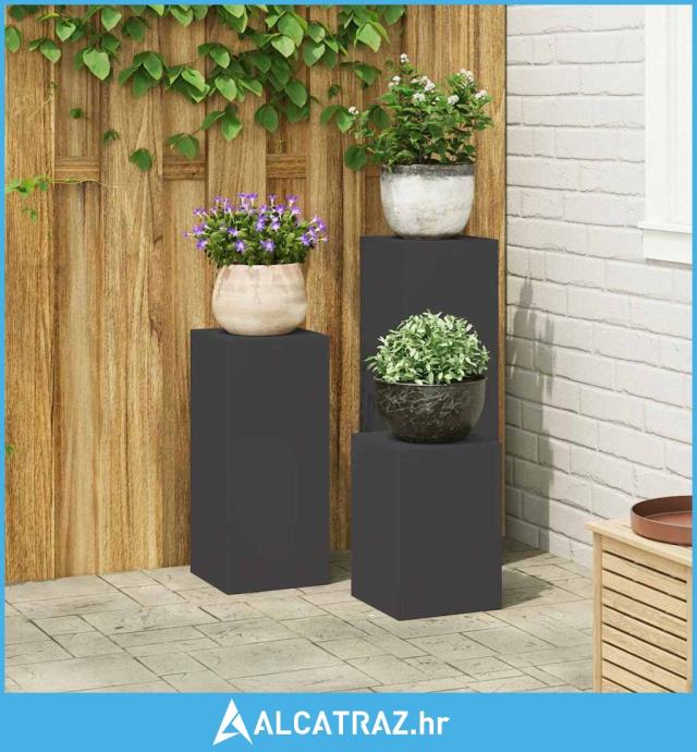 Ovaj set od tri metalna postolja za biljke kombinira izdržljivost i stil. Dizajnirano je da podiže vaše biljke, izgledajući odlično dok to radi. Njihov moderan dizajn lako se uklapa u svako vanjsko okruženje, čineći vaš vrt upečatljivim.