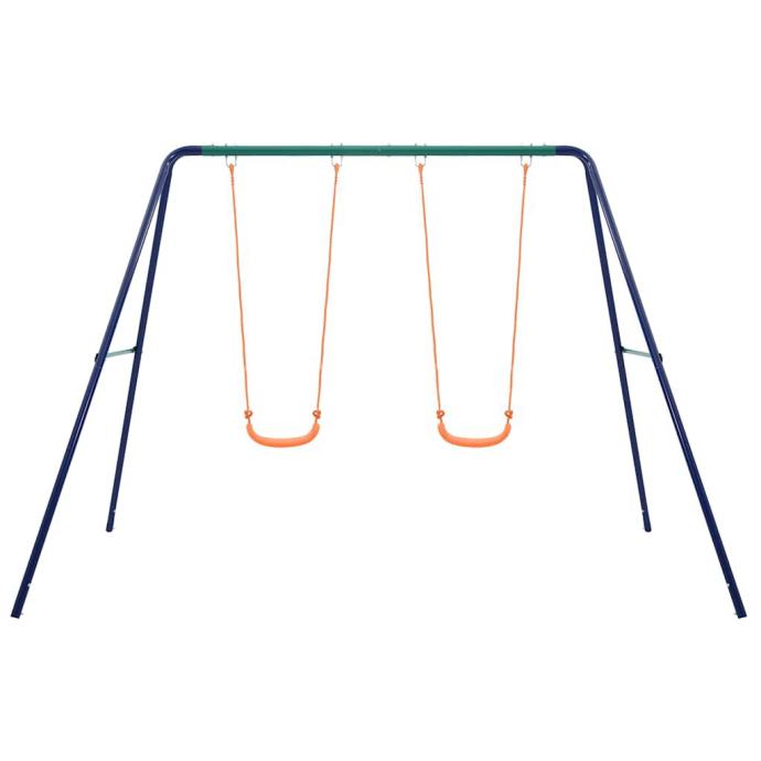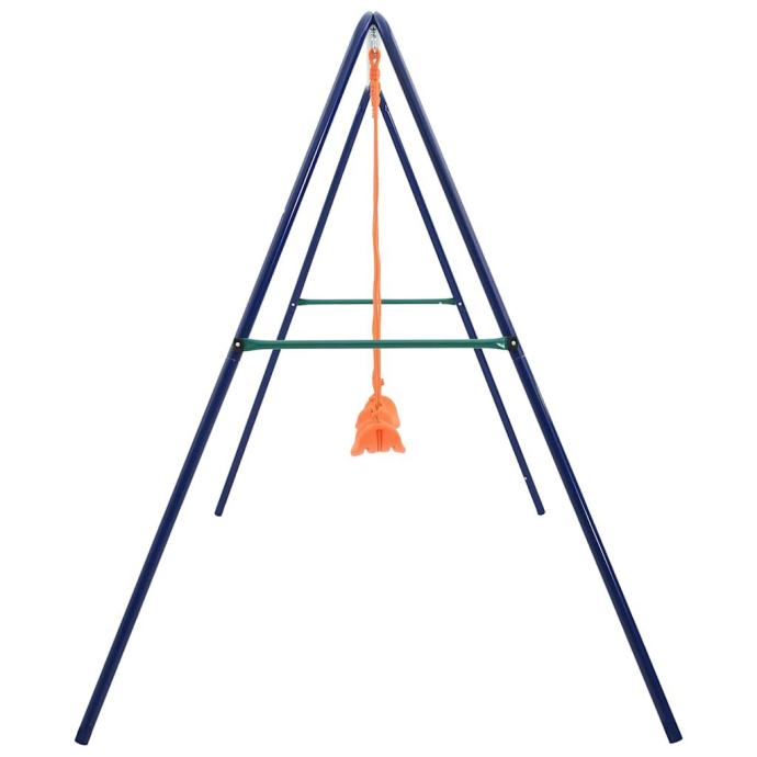 Ovaj set ljuljački sastoji se od čvrstog čeličnog okvira u obliku slova A s 2 pojedinačna sjedala za ljuljanje. Zahvaljujući čvrstom čeličnom okviru i plastičnim sjedalima, set je izuzetno izdržljiv i otporan na vremenske uvjete. Također se lako sastavlja. Sve ljuljačke su sigurno pričvršćene na čvrstu prečku A-okvira pomoću čvrstih nosača, vijaka, kuka i užadi.