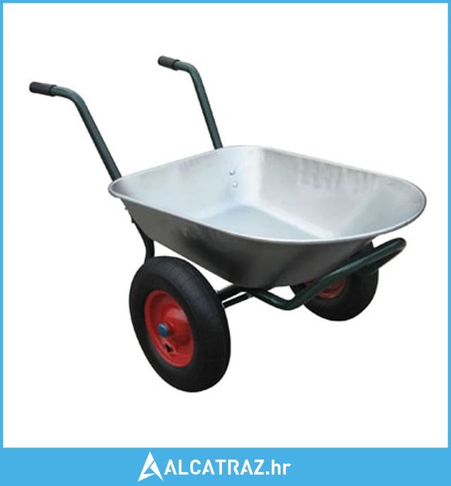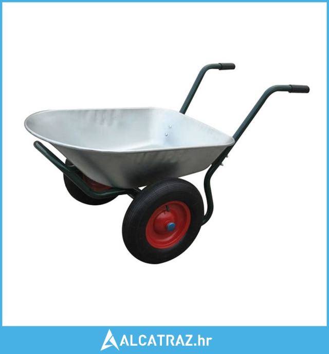 Ovaj rucni dvostrukni kotač ima snažnu za čelični okvir, nudi podršku i stabilnost. Pocinčan ladica ima kapacitet do 66 L. opremljena s dvije pneumatske gume,da se može lako pomicati.
