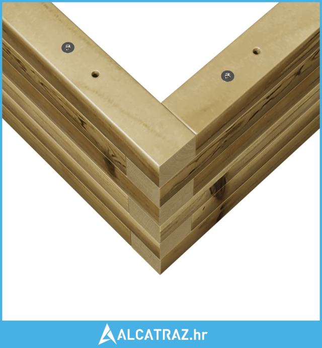 - Čvrst i stabilan materijal: Masivna borovina poznata je po svojoj snazi i izdržljivosti. Ravne šare i prepoznatljivi čvorovi pridonose njenom rusitičnom izgledu. Impregnacija je proces zaštite koji se provodi upotrebom autoklava. Obrada tlakom povećava otpornost na truljenje i vremenske uvjete.
