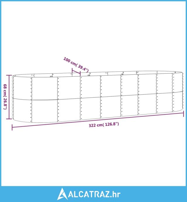 Vrtna sadilica od čelika obloženog prahom 322x100x68 cm srebrna - NOVO