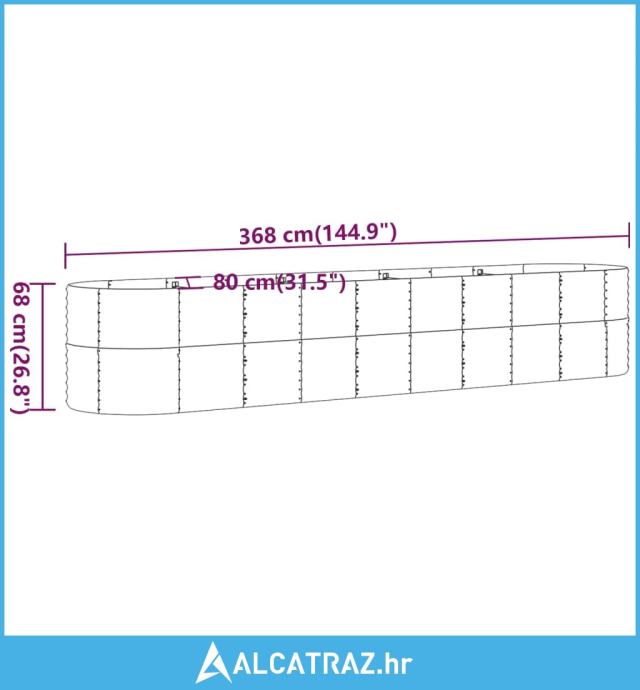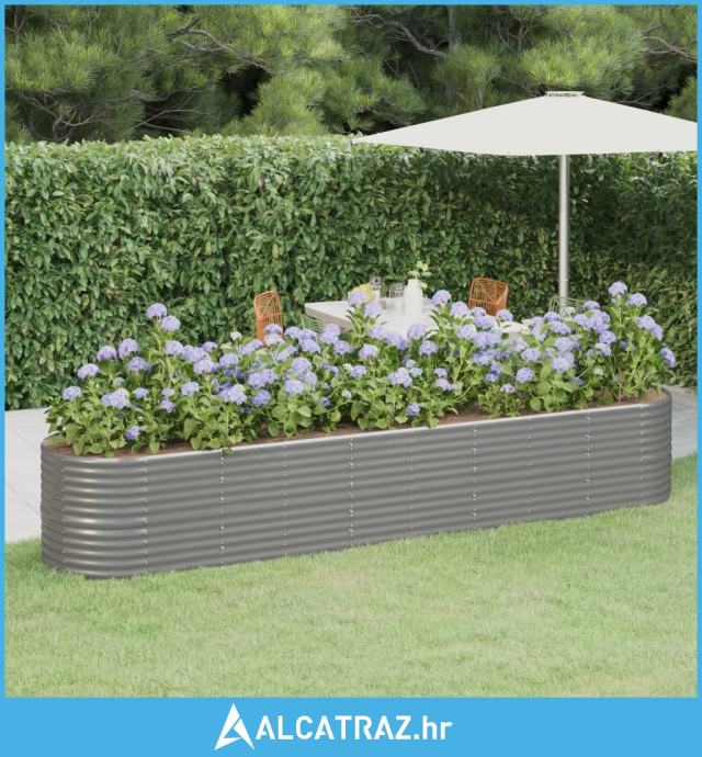 Vrtna sadilica od čelika obloženog prahom 368 x 80 x 68 cm siva - NOVO