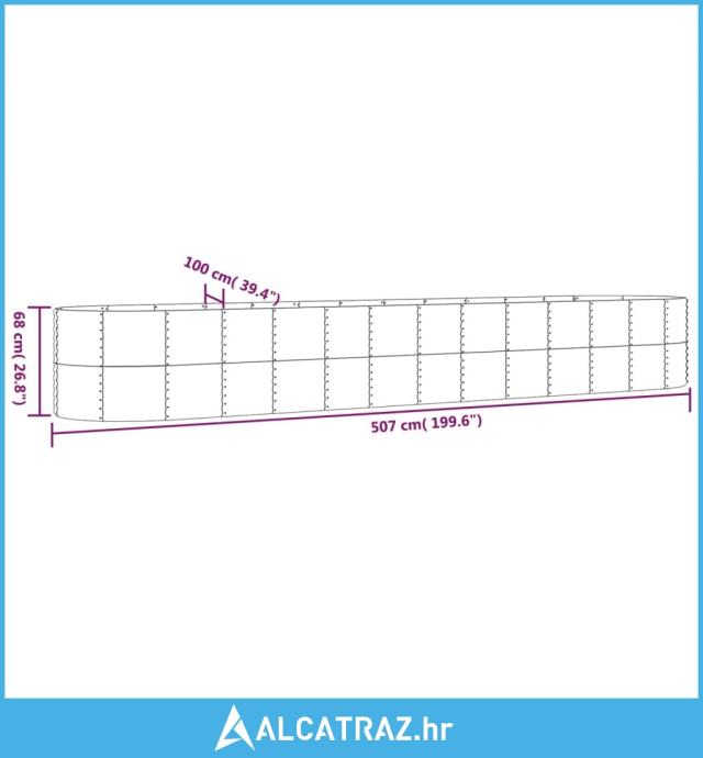 Vrtna sadilica od čelika obloženog prahom 507x100x68 cm srebrna - NOVO