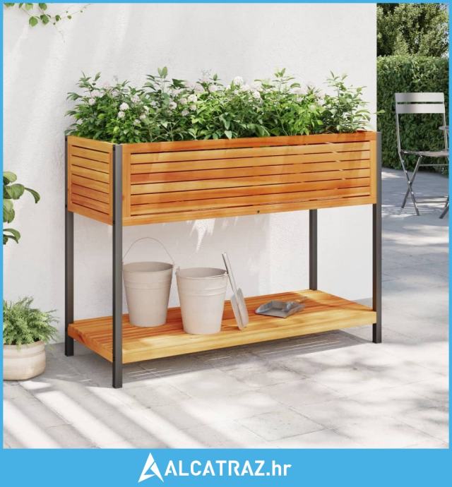 Vrtna sadilica s policom 110 x 45 x 80 cm masivno drvo i čelik - NOVO
