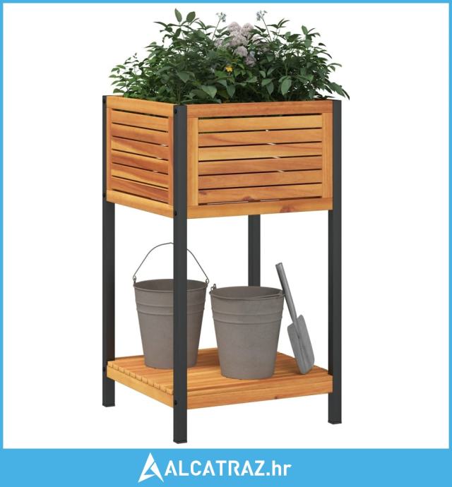 Vrtna sadilica s policom 45 x 45 x 80 cm masivno drvo i čelik - NOVO
