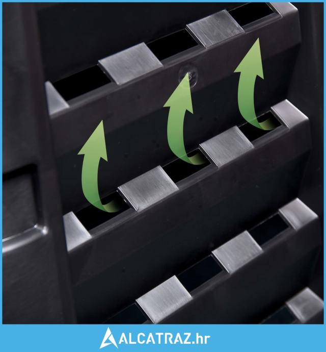 Veliki razvoj topline u jedinici za kompostiranje potiče bržu razgradnju bakterija i stvara bolji humus. Uz kompaktni dizajn, vrtni komposter zauzima malo prostora, ali ima veliku zapremninu. Poklopci na vrhu olakšavaju vam punjenje odozgo, a krilce osigurava jednostavno vađenje humusa. Sustav za navodnjavanje kapanjem, rupa za lokot, čvrsti bočni zasuni, snažne šarke za vratašca, udobna ručka i velika klizna vrata s udobnim držačima, osiguravaju praktičnu upotrebu.
